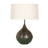 This mid-century modern–inspired lamp combines dark spruce and bronze-plated aluminum in a seamless design. The classic bulb base features a striking two-tone finish with bronze-plated steel hardware and is topped with an off-white cotton drum shade with matching lining.